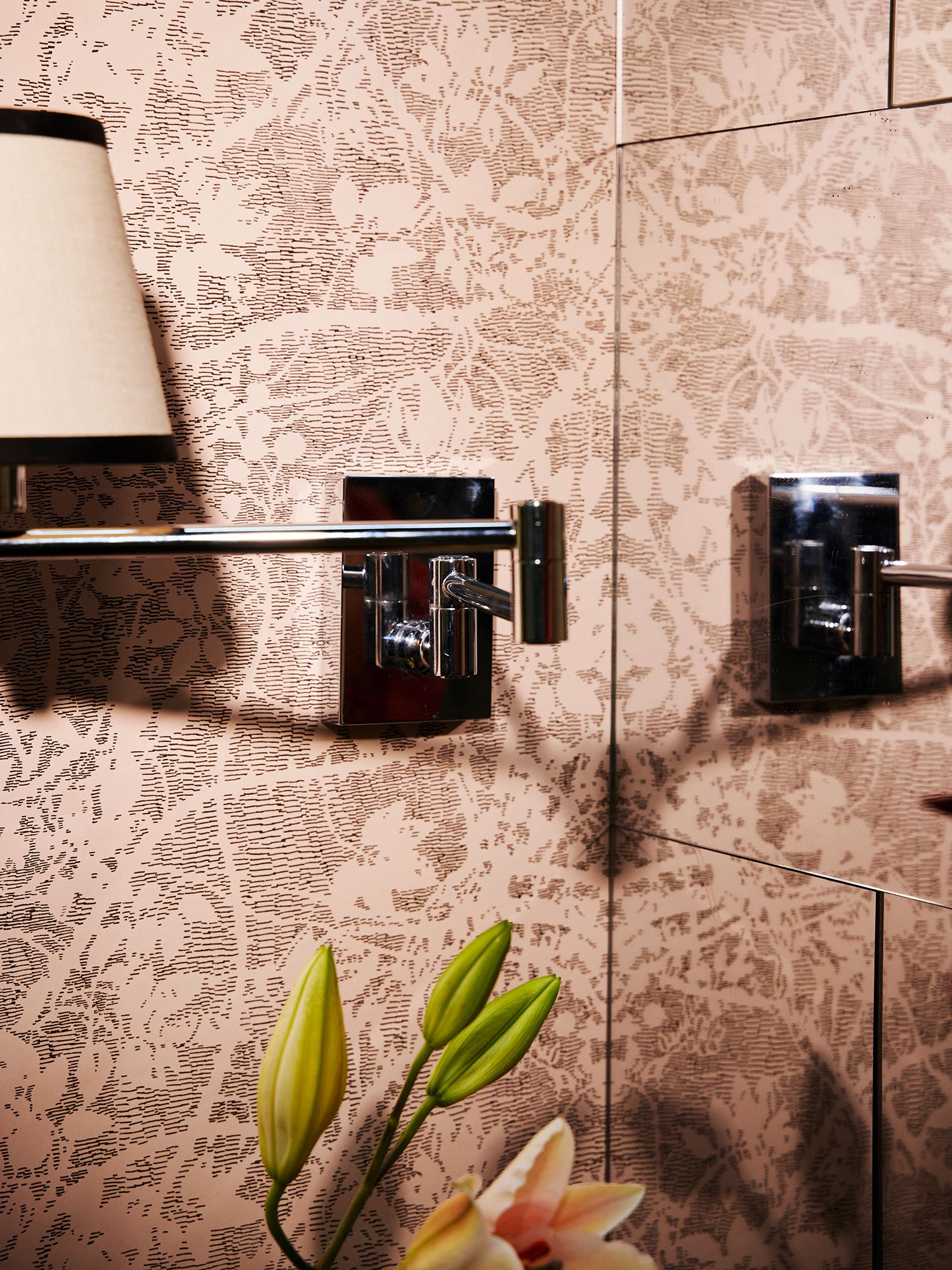 Anna Chapman Parker’s design began with a 6th century drawing of a bramble in a Byzantine manuscript, a precious herbal once owned by a Constantinople princess. This prompted a trail of research through later versions of the herbal which, as Anna drew them, began to weave together into a thorny tapestry. Thicket charms a room with a feeling of enclosure and spins us into the realm of ancient fairytale with arching twists at every turn.